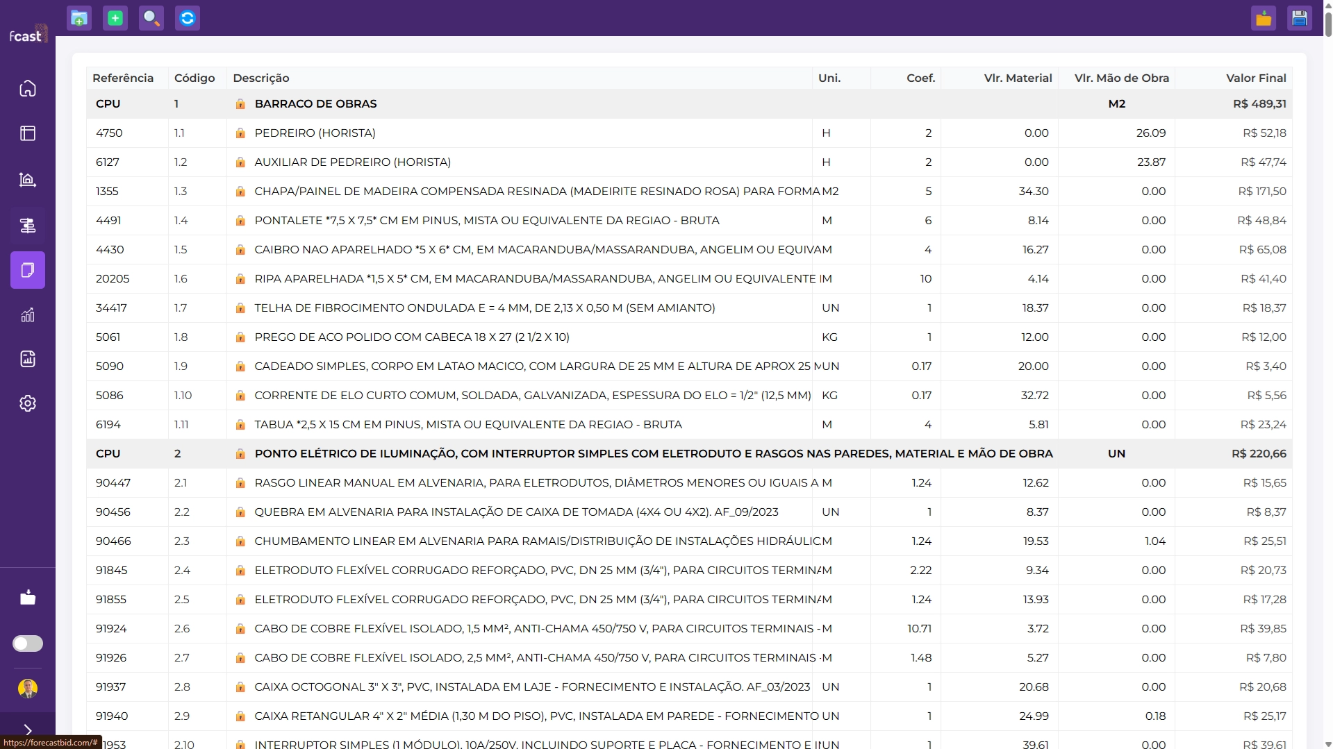 Ou use o bancos de dados de composições de custos e insumos da SINAPI (já integrada com o Forecast)