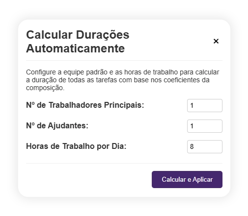 Cálculo automático do tempo de duração da obra