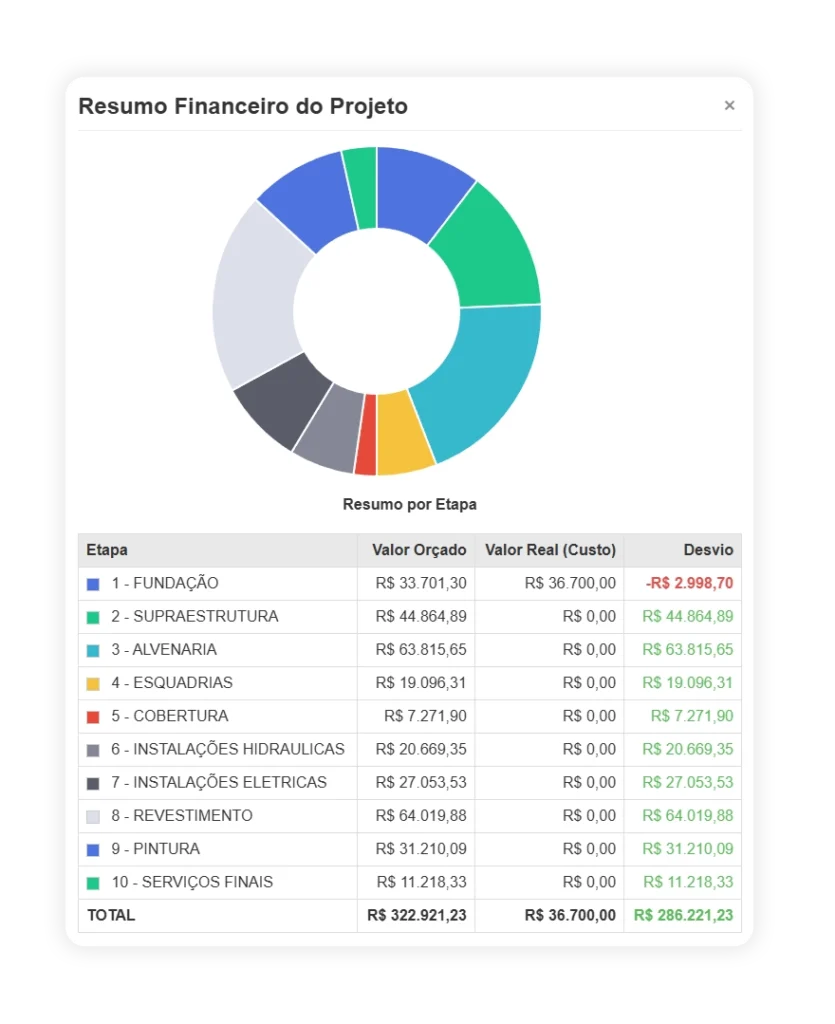 Determine o início e o final da obra, e seu planejamento vai ser gerado em alguns minutos.