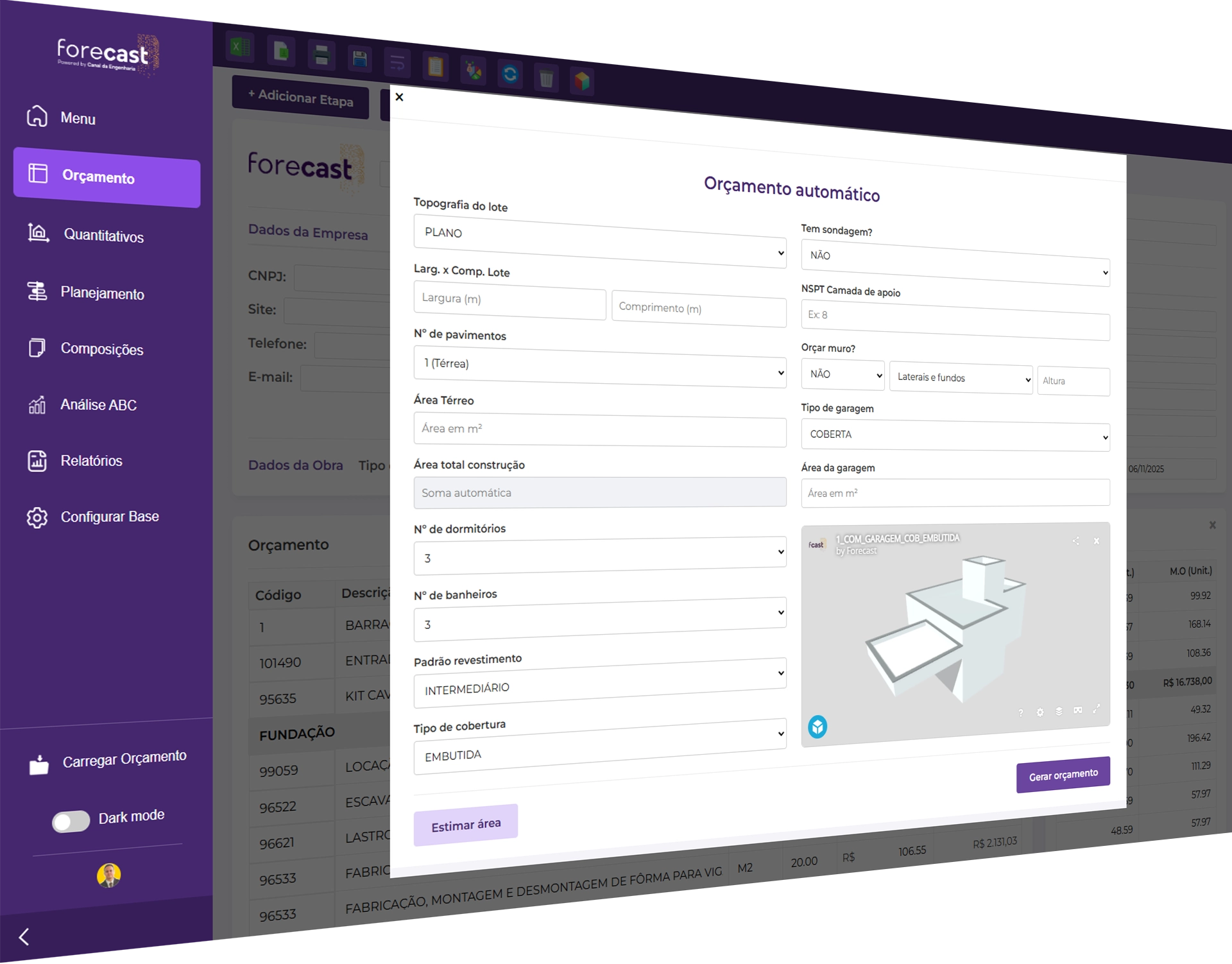 Use o Forecast e ganhe eficiência e precisão em seus orçamentos de obras.
