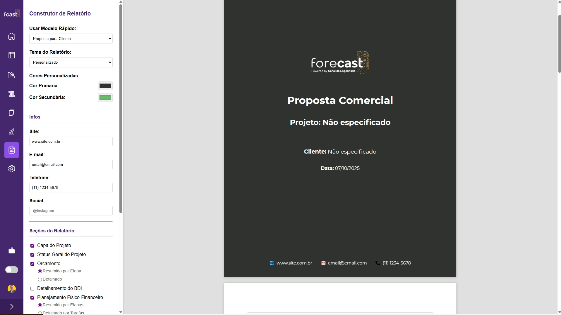 Gere relatórios e propostas profissionais para os seus clientes